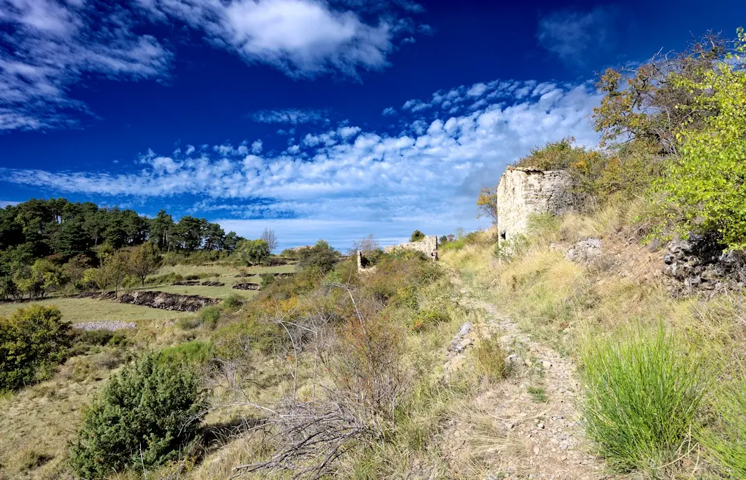 Paesaggi prima bucolici con mandria nelle vicinanze e potente 4x4 parcheggiato accanto, poi roccioso o intensamente minerale fino alla Baisse des Colettes che lascia la valle dell'Estéron per quella del Var.